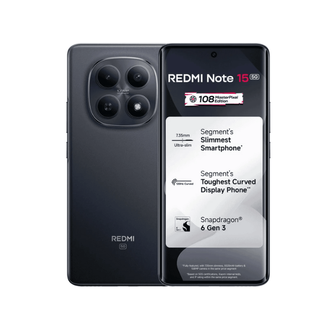 The Xiaomi Redmi Note 15 5G is a mid-range 5G smartphone that blends premium design with solid everyday performance. It features a 6.77-inch curved AMOLED display with a smooth 120 Hz refresh rate and very high peak brightness, making visuals sharp and vibrant even outdoors.
